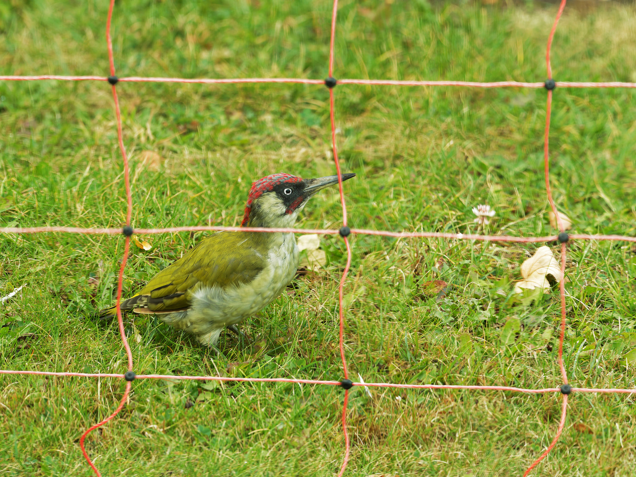 Im nahegelegenen Restaurant holen wir uns noch einen Hamburger mit Pommes und sind kurz danach zurück am Womo, wo uns Nachbars Hausgrünspecht für 2 Fotos erwartet…