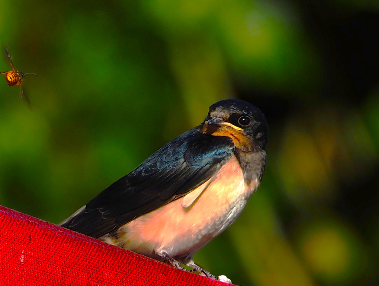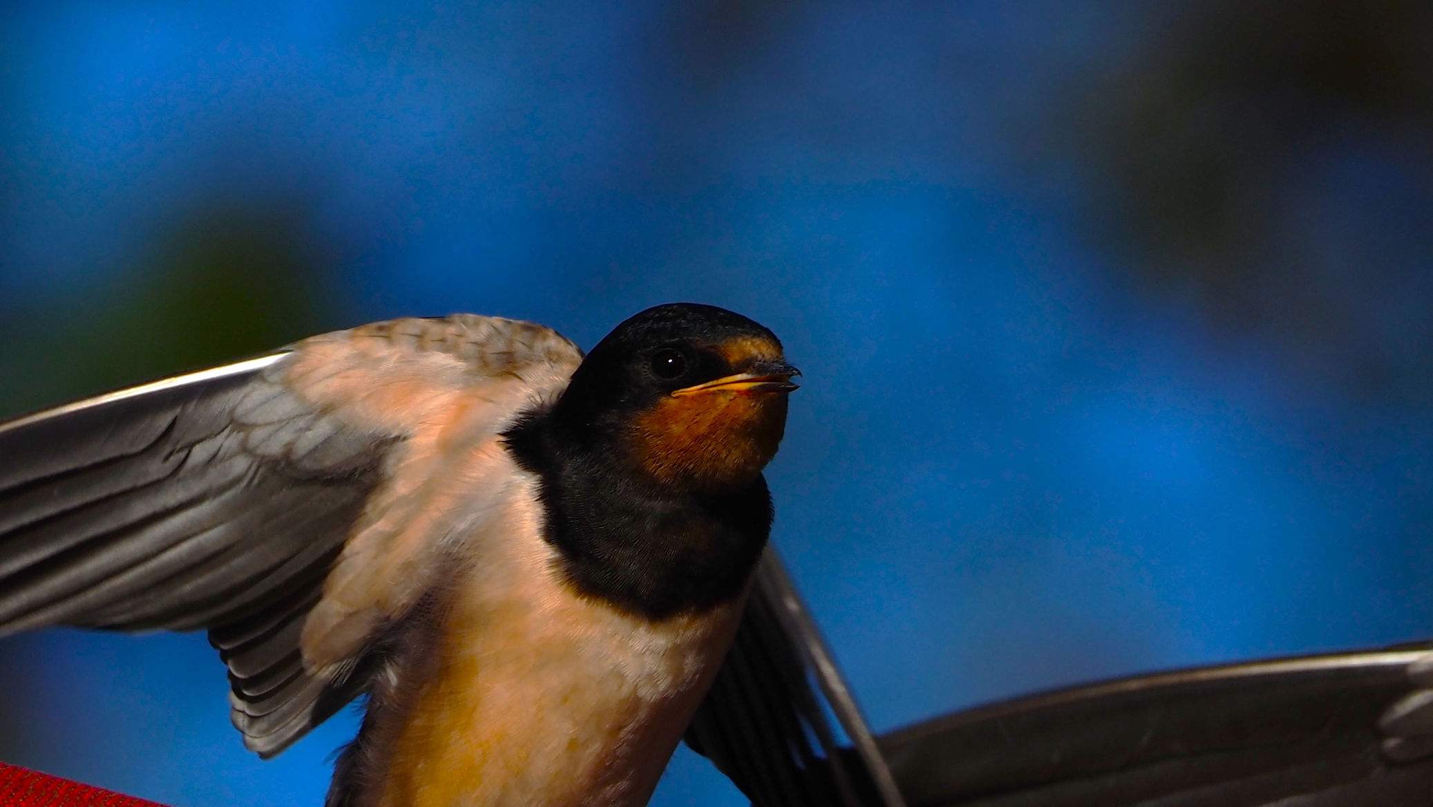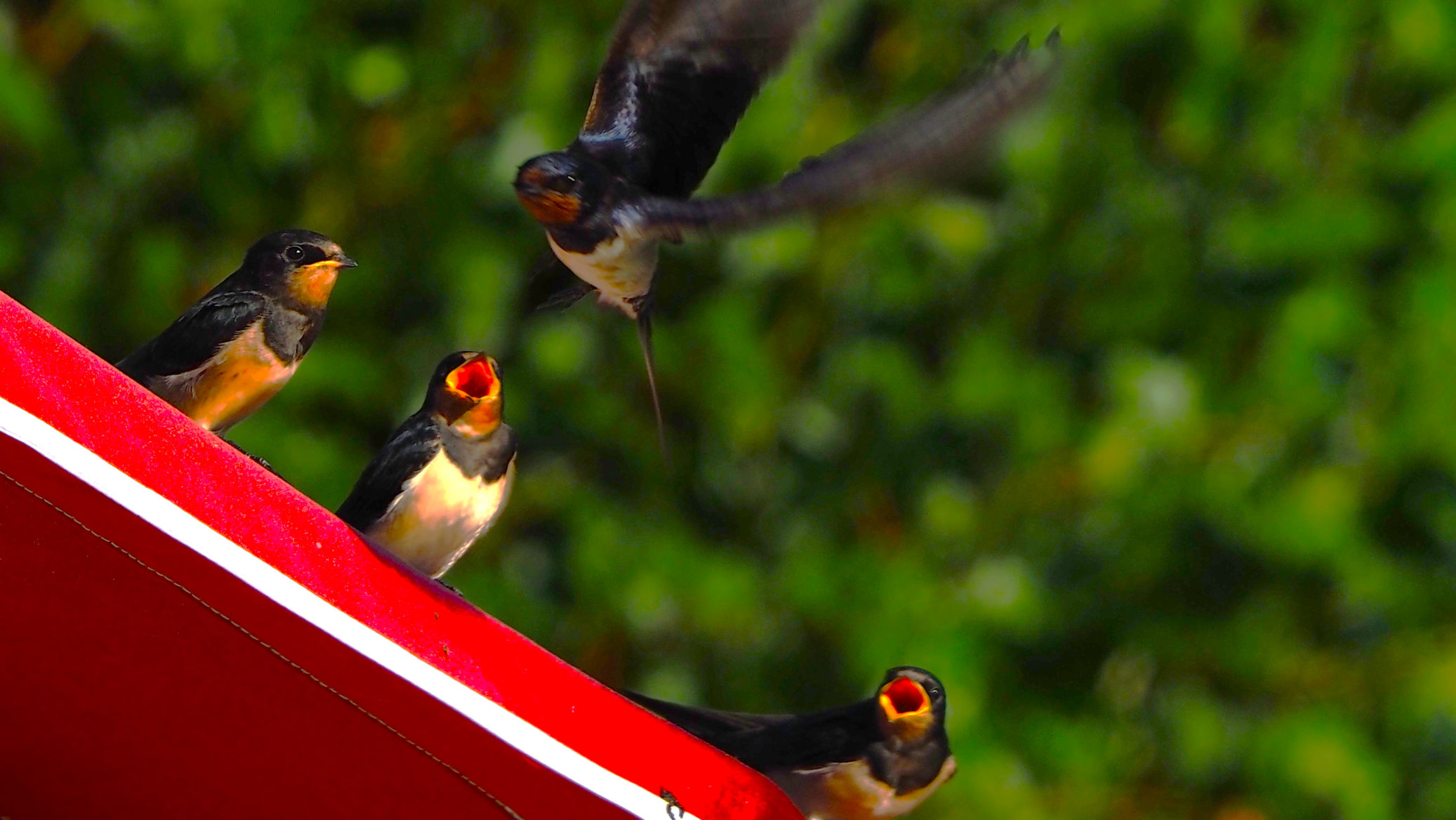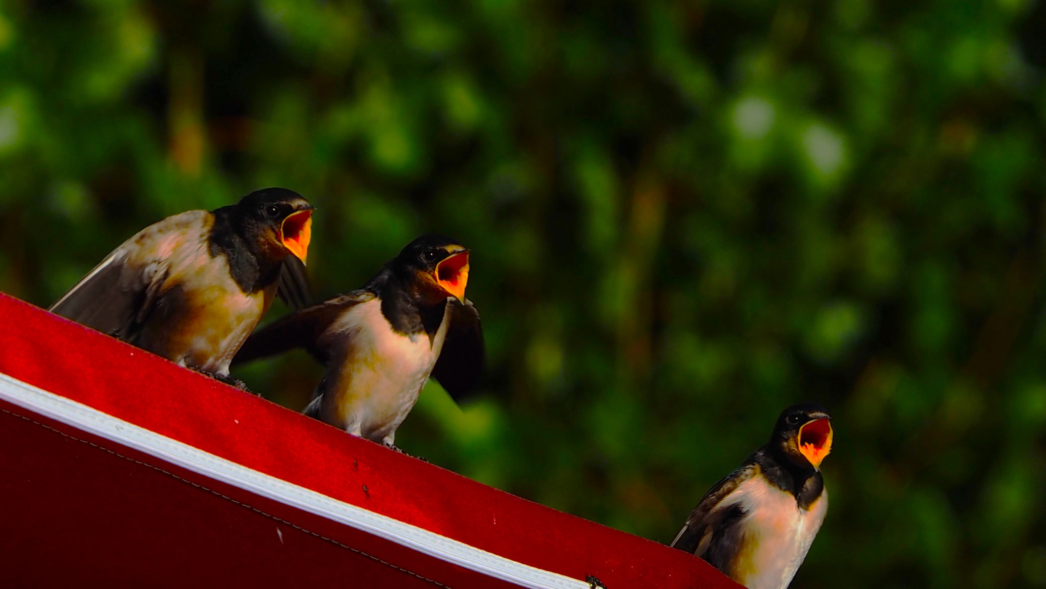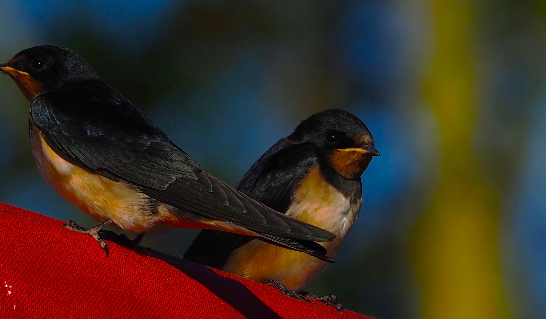 Es war so wunderbar ruhig letzte Nacht, so dass wir ungefähr 12 Stunden geschlafen haben. Der Himmel am heutigen Morgen ist wunderbar blau und es ist so warm vorm Womo, dass wir uns einfach mal in die Sonne setzen. Unterhalten werden wir hierbei von 3 jungen Schwalben, die auf dem Nachbarvorzelt sitzen und sich von ihren Eltern füttern lassen.