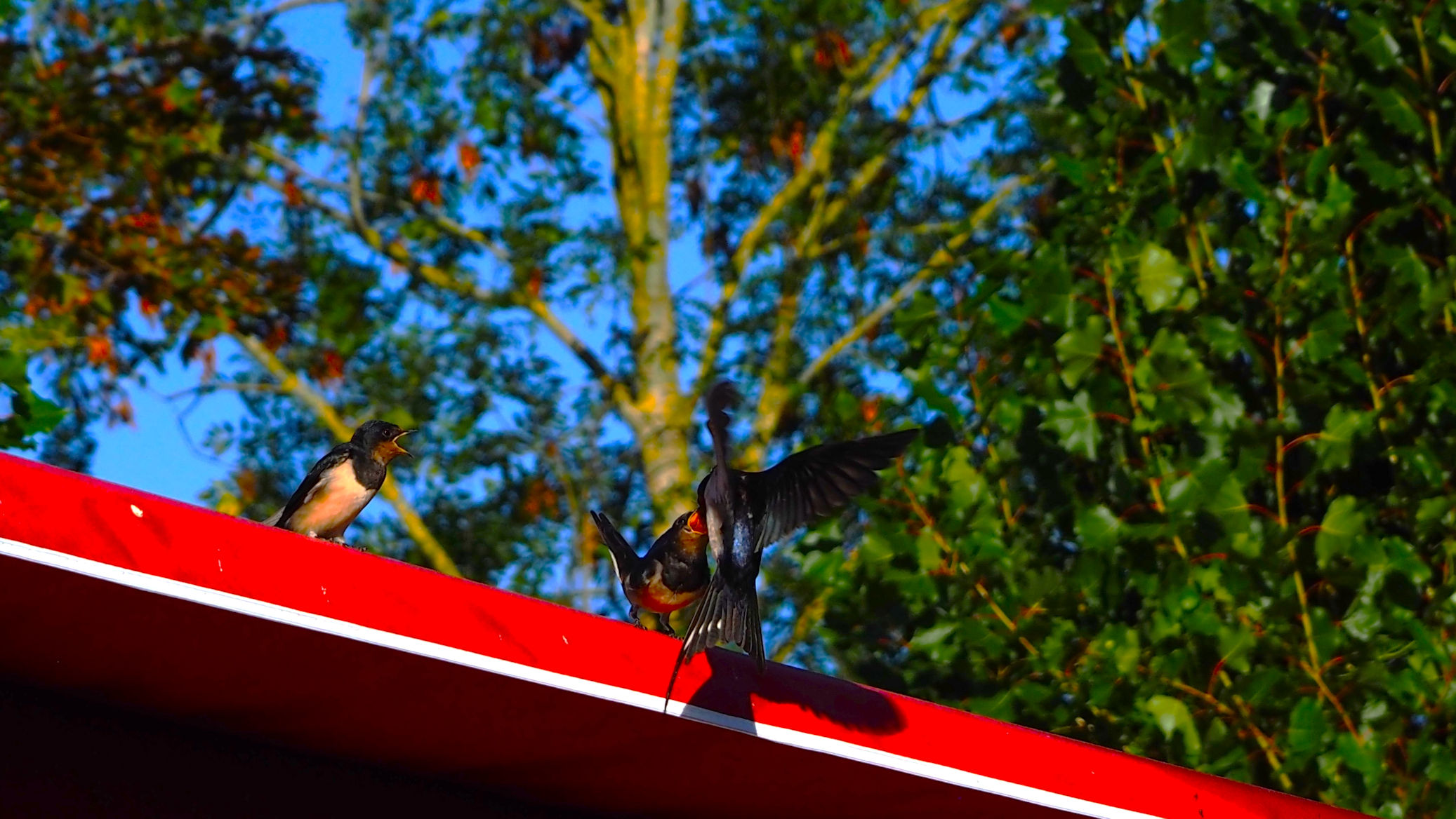Gegen 11 Uhr ist die Schwalbenshow beendet, denn heute am Sonntag kommen beide Nachbarn (Dauercamper) zu ihrem Platz. Leider bauen sie auch den Schwalbenstützpunkt ab. Zwischendurch erkundet Ulli das Terrain hinter dem Camping und es folgt ein weiterer wundervoller Moment: 2 junge Seeadler lassen sich bei ihren Flugübungen beobachten.