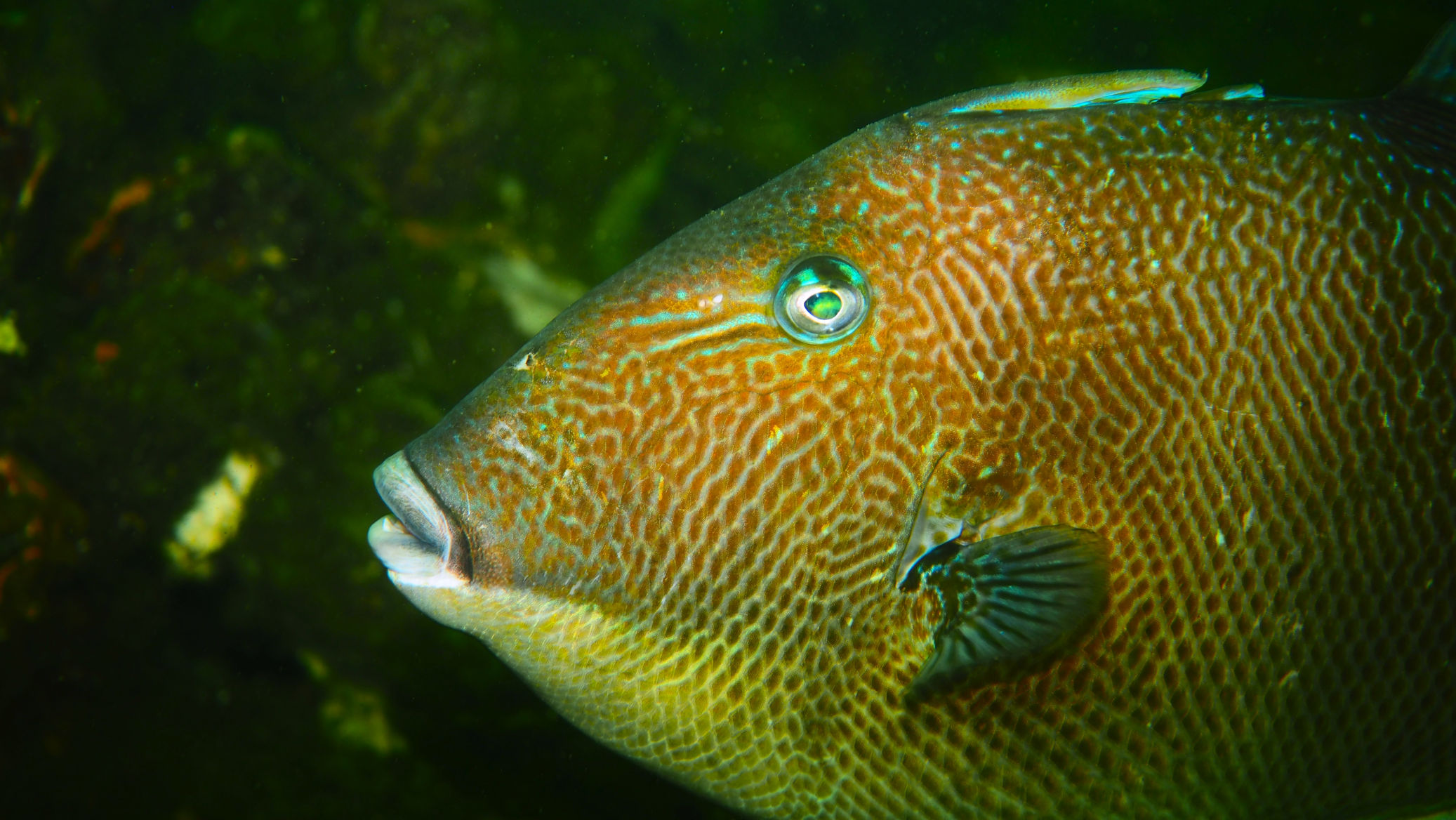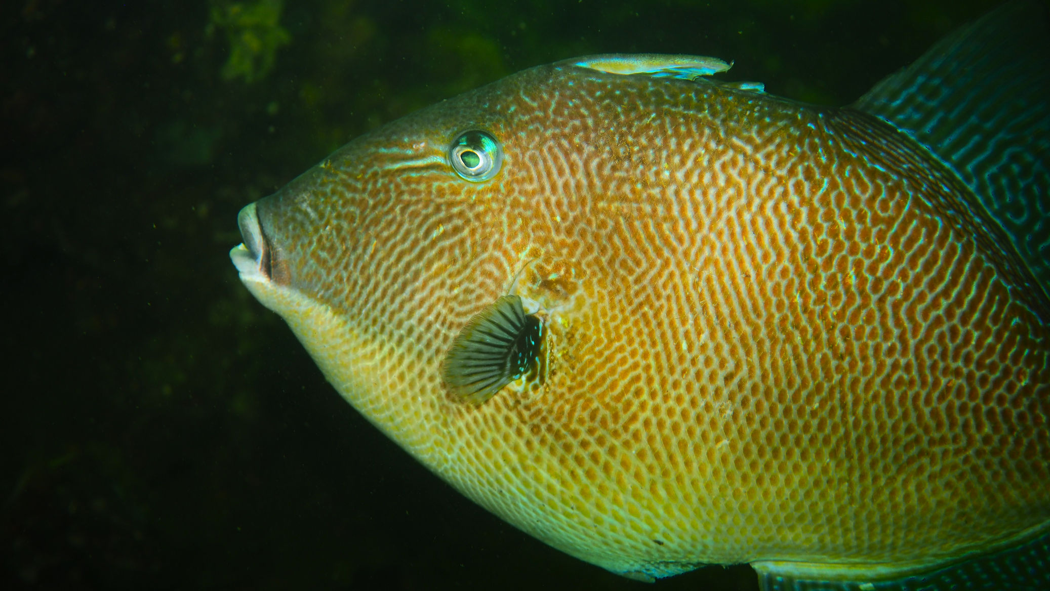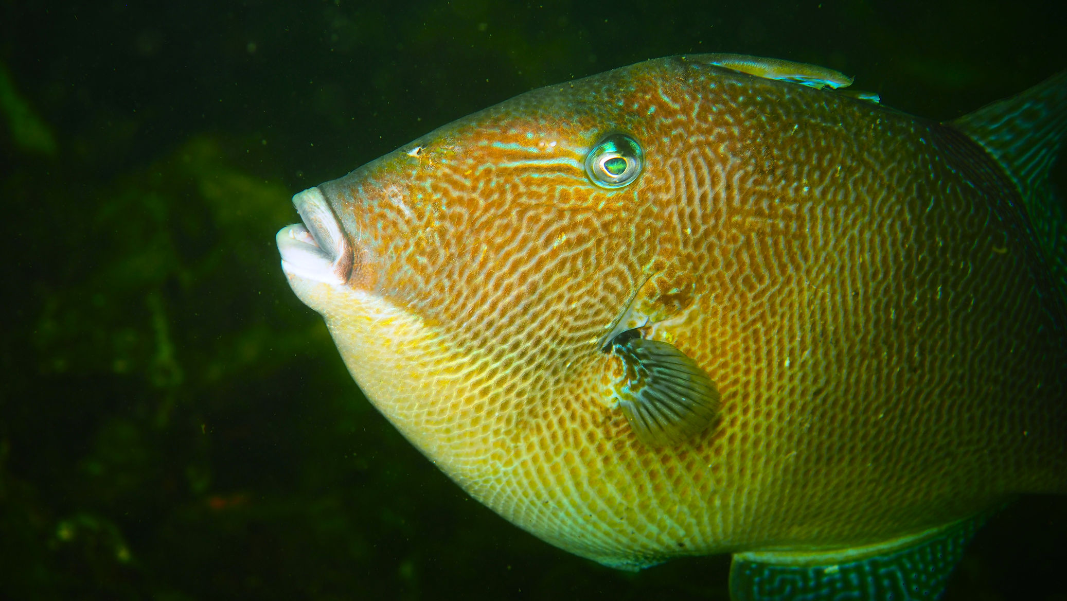 Als wir das Riff unterhalb des Stegs erreichen, erwartet uns dort der schöne Drückerfisch für ein paar Aufnahmen, bevor wir uns nach und nach den Weg durch die vielen Quallen an die Oberfläche bahnen.