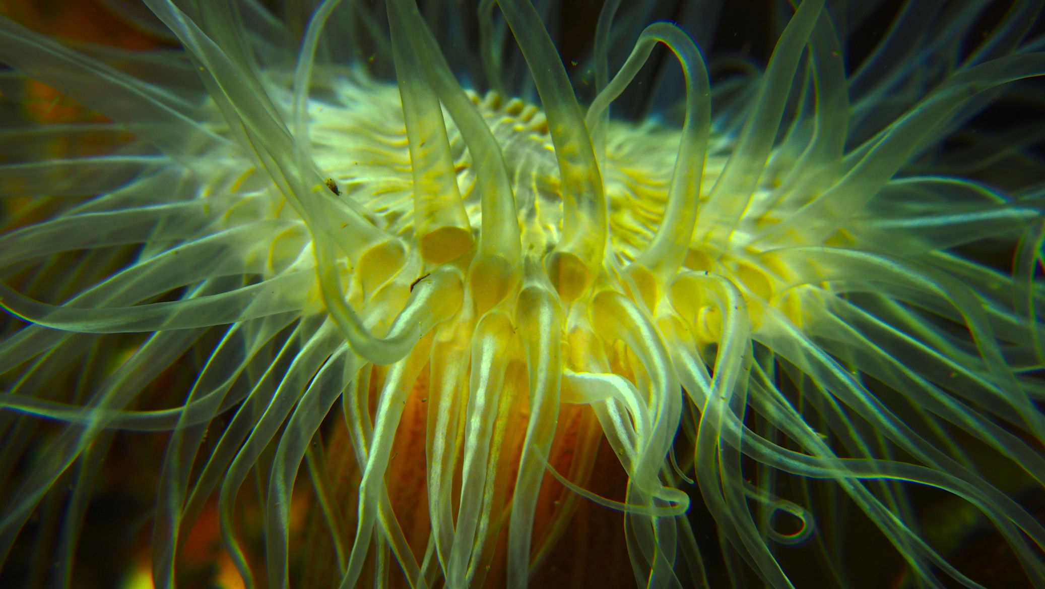 Schnell sind wir angerödelt und tauchen ab. Das Abtauchen wird heute von Qualle dicht an dicht bis in eine Tiefe von ca. 5 m etwas erschwert. Es ist nicht wirklich schwer hier hindurch zu tauchen, aber es fühlt sich ein bisschen eklig an. Erst ab 6 Metern Tiefe ist es nahezu quallenfrei und die Sicht ist ganz okay. Der Plan heute ist, etwas weiter vom Steg wegzuschwimmen, in der Hoffnung, dass hier das Riff noch intakter ist. Leider ist dem aber nicht so. Schade um diesen einst so wundervollen Tauchplatz.