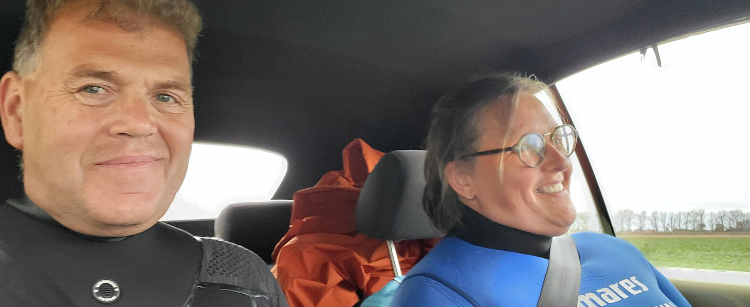 Gegen 12 Uhr verabschieden wir uns bei Bart und Yvonne und sind nach ca. 40-minütiger Fahrt wieder auf dem Landschaftscamping Kruytenburg zurück. Wir dürfen wieder auf Platz 14 parken und als unsere Fellnasen aussteigen, ist die Freude darüber so groß, dass die beiden erst einmal wild auf dem Rasen herumtoben. Es ist bewölkt, das Thermometer kommt nicht über 16 Grad hinaus, also gibt es doch nichts Schöneres, als kurz im Tauchreiseführer und der dazugehörigen App nochmals die Tauchplatzbeschreibung von unserem nächsten Tauchplatz Bergse Diepsluis Oesterdam zu studieren. Und da finden wir etwas, über das wir gerne berichten möchten: Tintenfischringe als auch Dudelsäcke soll es am Tauchplatz zu entdecken geben.