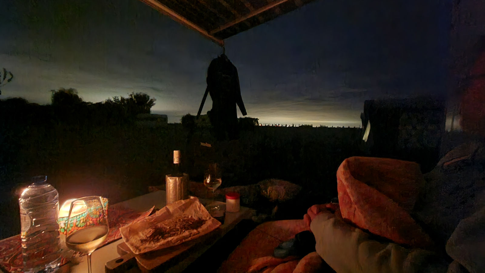 Nicht mal am Abend lichten sich die Wolken. So kochen wir kurzerhand eine Seelen-Gorgonzola-Pasta und genießen einen der leckeren Weißweine der Kleinen Schorre dazu. Natürlich dick eingemummelt in unsere warmen Decken.