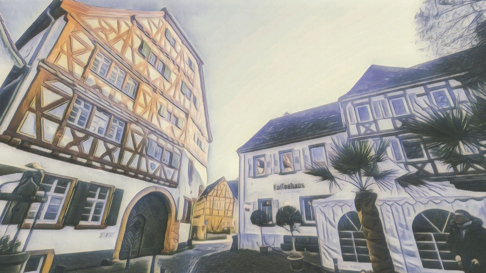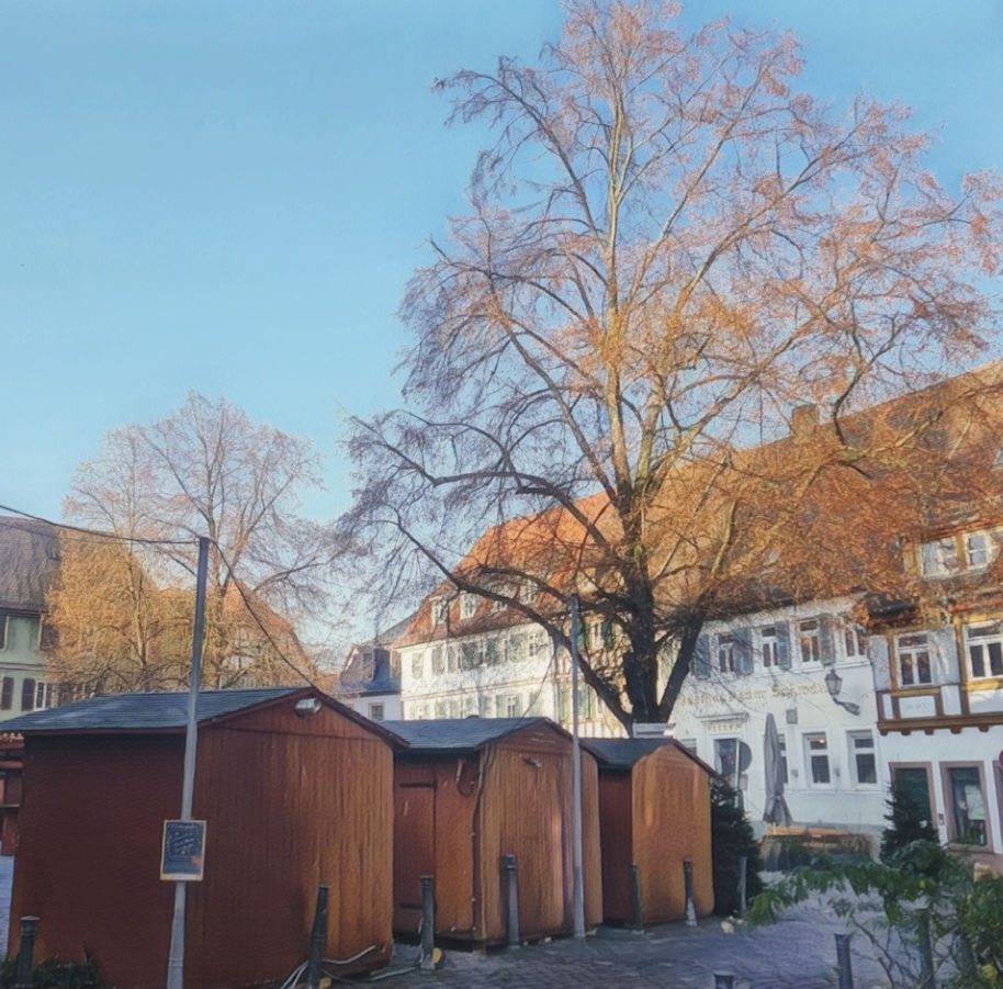 Um 9 Uhr treffen wir uns mit Carsten zum Frühstück im Kaffeehaus in Ladenburg. Die kleinen roten Weihnachtsbuden und der stahlblaue Himmel an diesem kalten Morgen stimmen uns genauso auf Weihnachten ein, wie das lsutige und überaus leckere Frühstück.