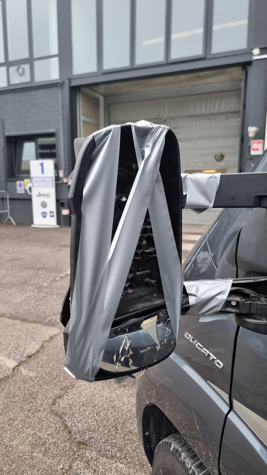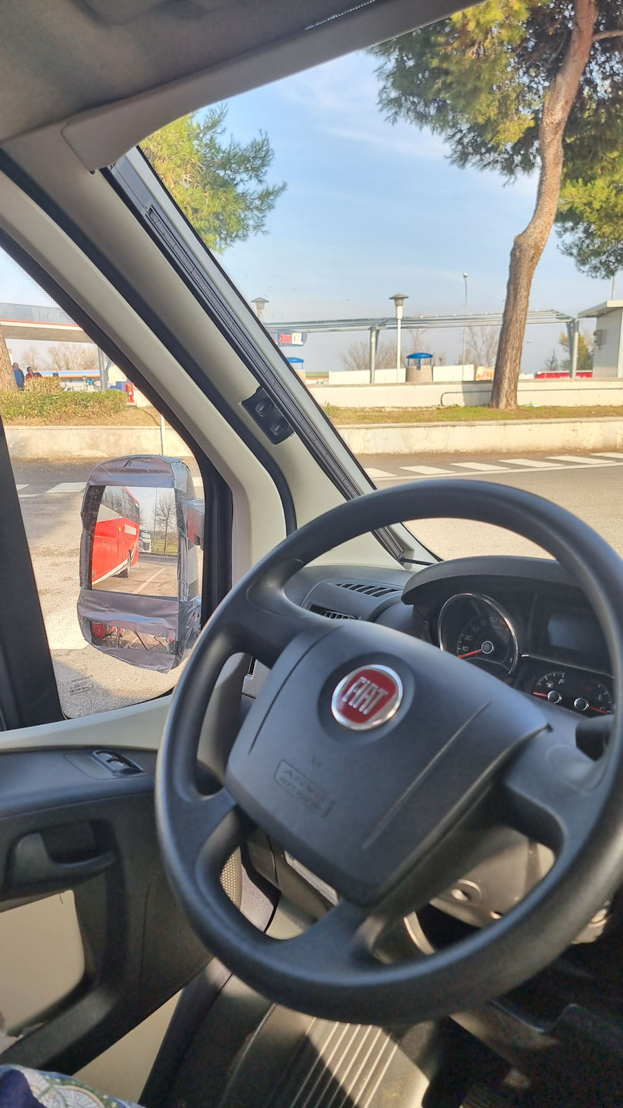 Unser linker Spiegel baumelt nur noch an 2 Drähten am Womo. Und so fahren wir mit offenem Fenster und Spiegel in der Hand zu einer gerade mal 5 km entfernten FiatProfessional Werkstatt. Alle hier sind nett: die Leute, die in der Schlange stehen, die jungen Mitarbeiter, nur nicht der Servicemitarbeiter, der nach längerem Warten für uns zuständig ist. Er fertigt uns so ab, wie man es nicht macht. Der eine Googlestern ist ihm sicher, als er meint, wir sollten es mit unserem Problem besser mal in einer Klitsche um die Ecke versuchen.