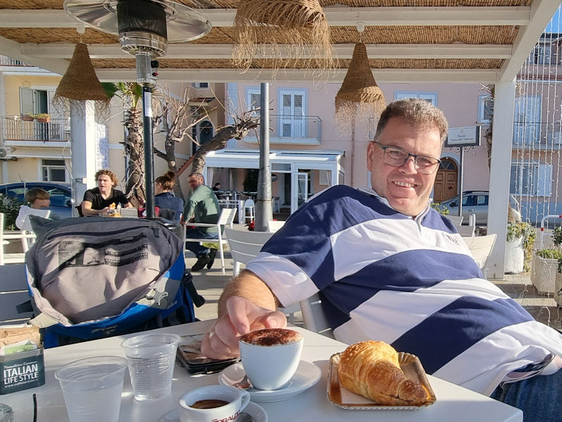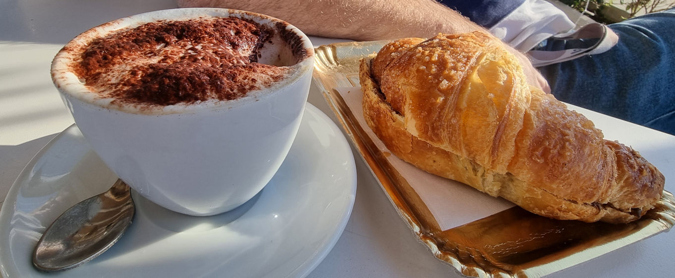 Die erste offene Bar ist unsere. Wir ordern Cornetti ai Frutti di Bosco und Caffè und Cappuccino. Kurze Zeit später erscheint eine nette Dame am Tisch, lächelt uns an und meint: „Waldfrüchte sind aus, wir haben nur noch Schoko oder Crema“ Und so stehen wenig später der Kaffee und die Hörnchen mit Schoko vor uns und der Tag gilt als eröffnet.