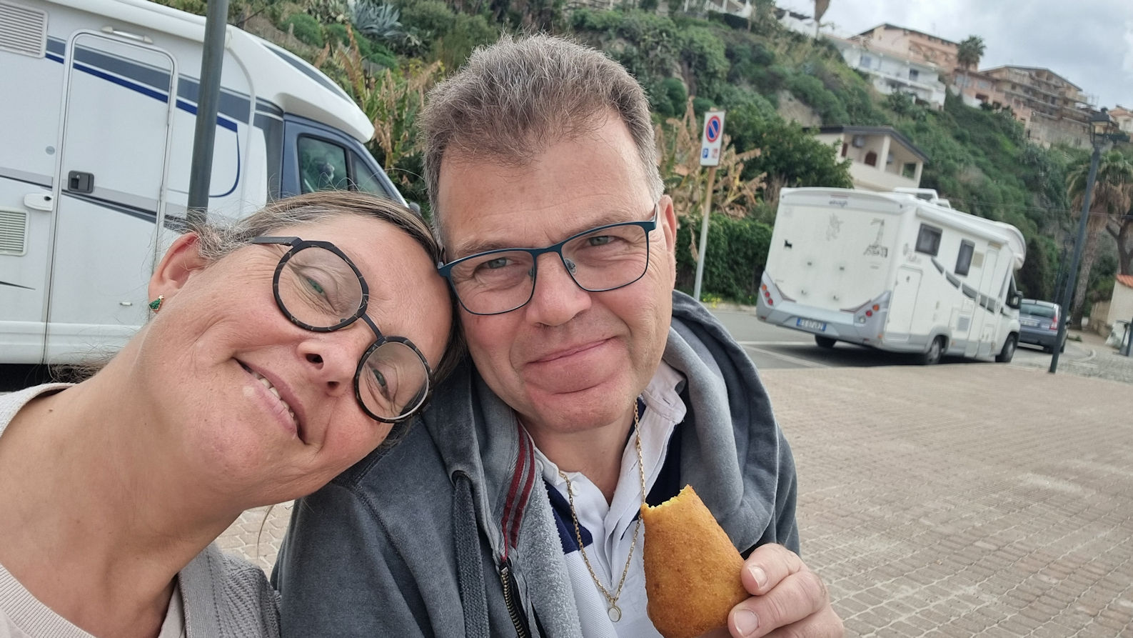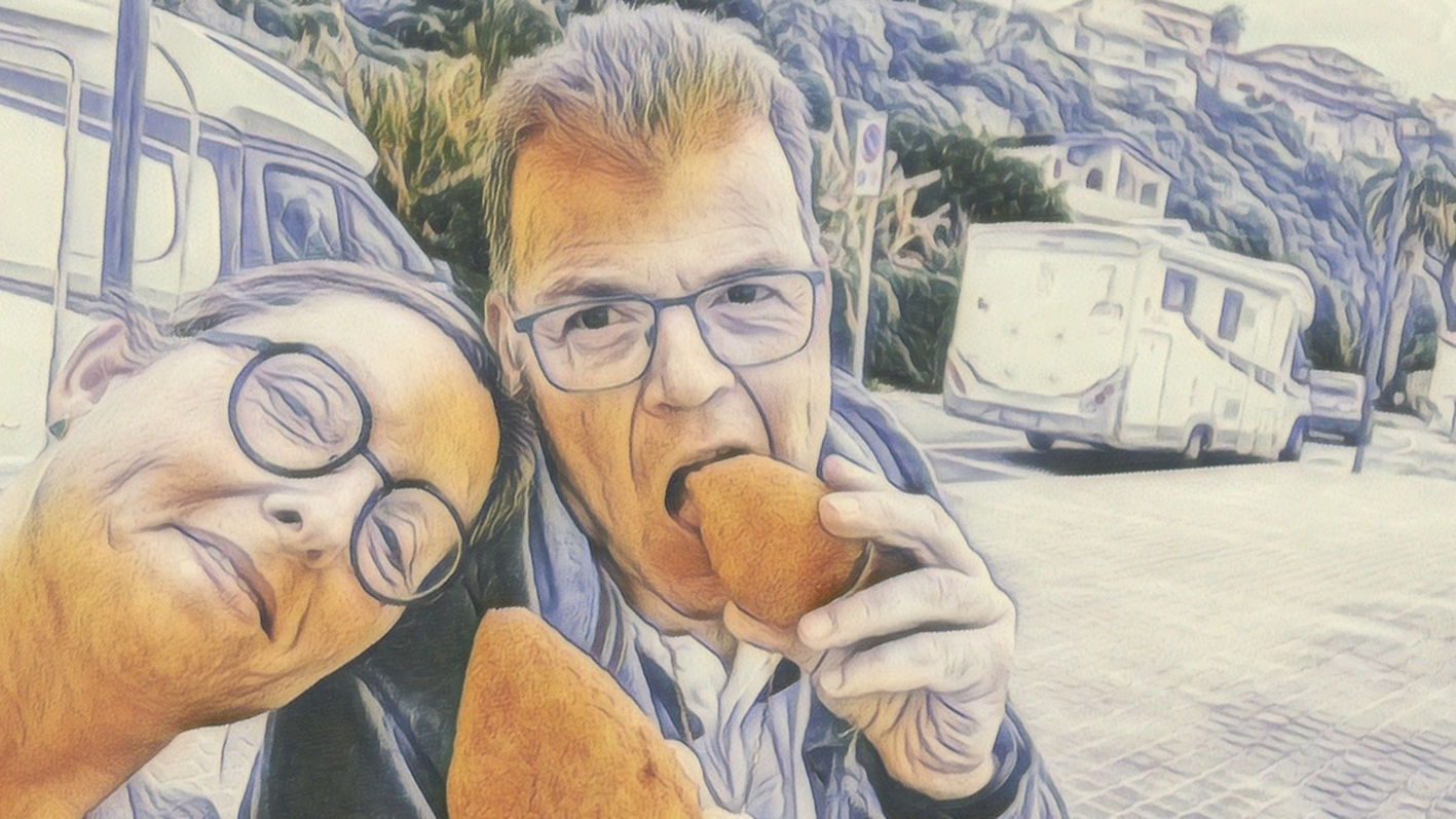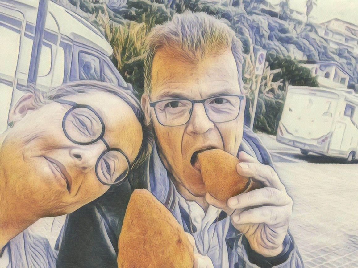 Wir drehen eine stressige Runde durch Tropea und parken wenig später auf einem der freien Plätze auf der Straße oberhalb des Meeres ein. Perfekter Zeitpunkt für unseren Mittagssnack: Arancini und etwas Foccacia auf der Steinbank des Lungomare. Wir haben Spaß und müssen nochmal über die peinliche Man-spricht-Deusch-Vorstellung der beiden Deutschen auf dem Stellplatz um die Ecke lachen.