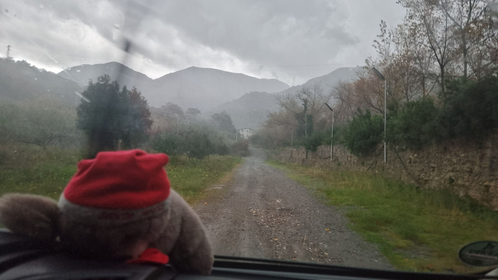 Auf dem Weg zu einem etwas abseits der Straße liegenden Stellplatz, wo niemand zu sein scheint, erreicht uns das Unwetter. Wir schaffen es gerade noch einigermaßen sicher zurück zur Küstenstraße und dann hat man das Gefühl jemand würde Eimer ausgießen. Entsprechend langsam geht es auch auf der Straße zu.
