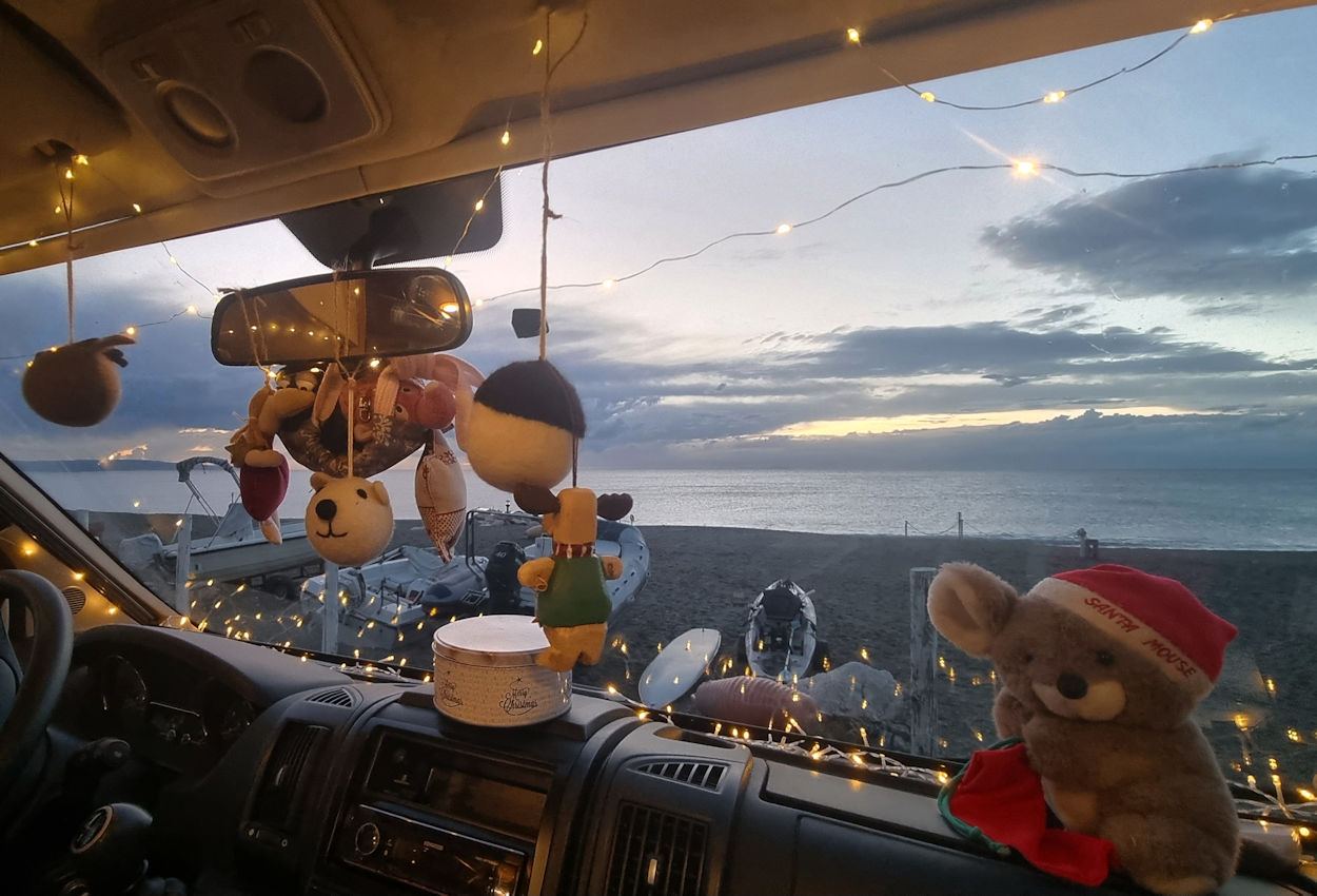 Ach ja, unser Womo haben wir auch geschmückt, denn morgen ist Heiligabend und da bleiben wir einfach hier.
