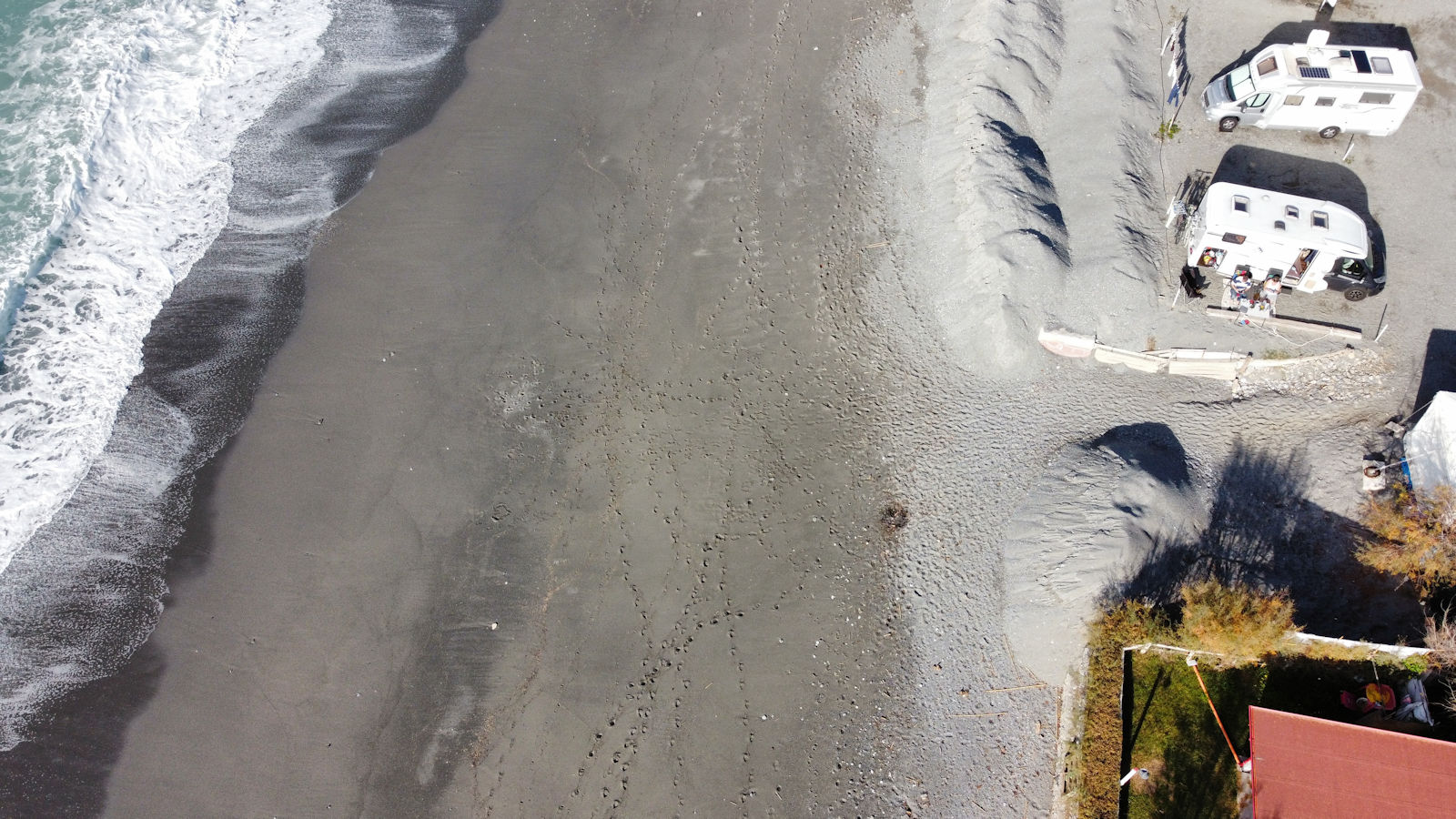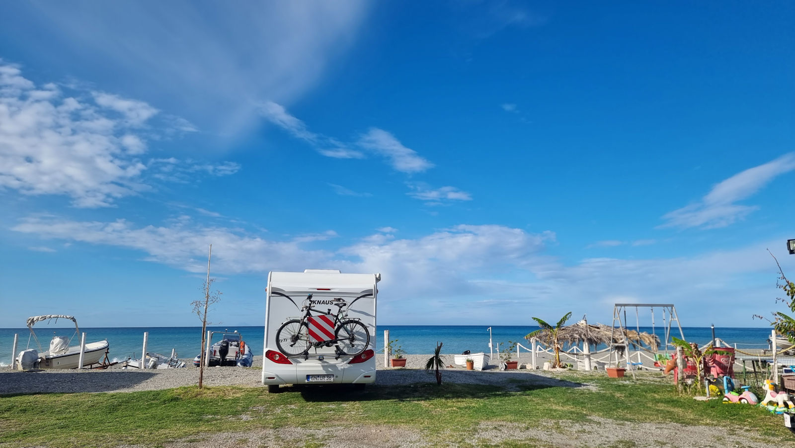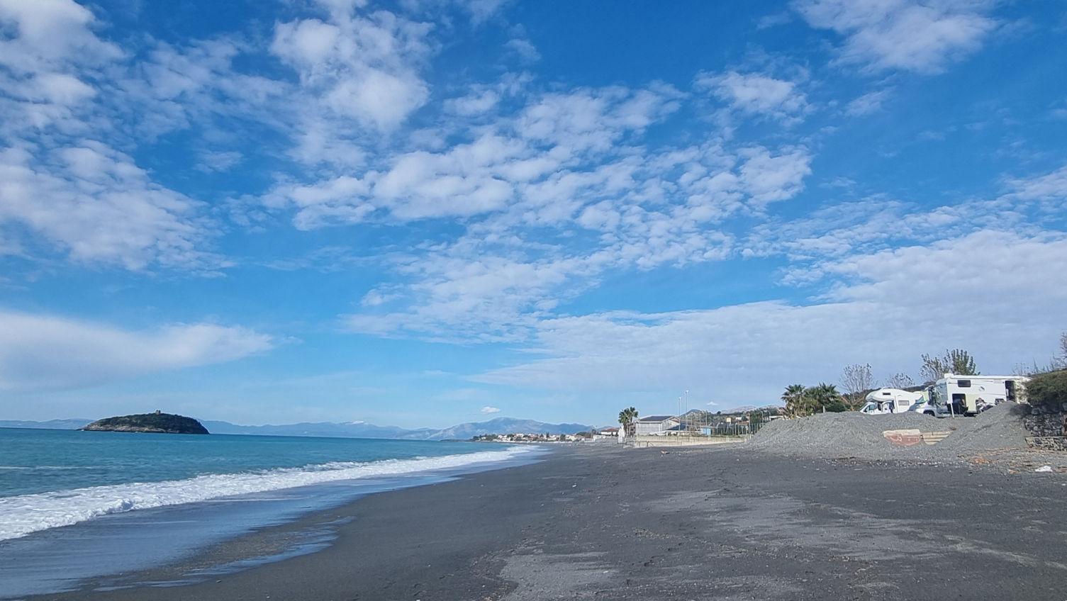 Ein letzter Check des Wetterberichts und wir rufen gegen 9 Uhr einen Stellplatz nahe der kleinen Küstenstadt Diamante an. Der Betreiber kling sehr nett und hat einen Stellplatz am Meer für uns. So sind wir nach kurzer Verabschiedung und Austausch eines kleinen Weihnachtsgeschenkes, Schokolade aus dem Piemont gegen leckere schwarze Oliven, auf dem Weg an der Küste entlang in Richtung Norden.
