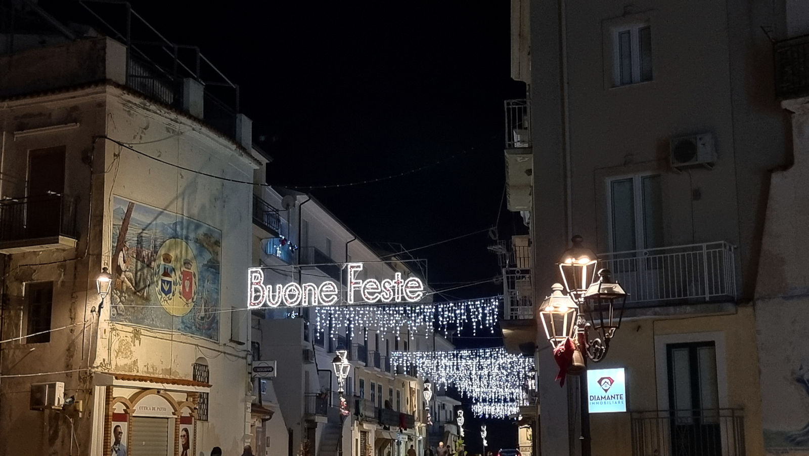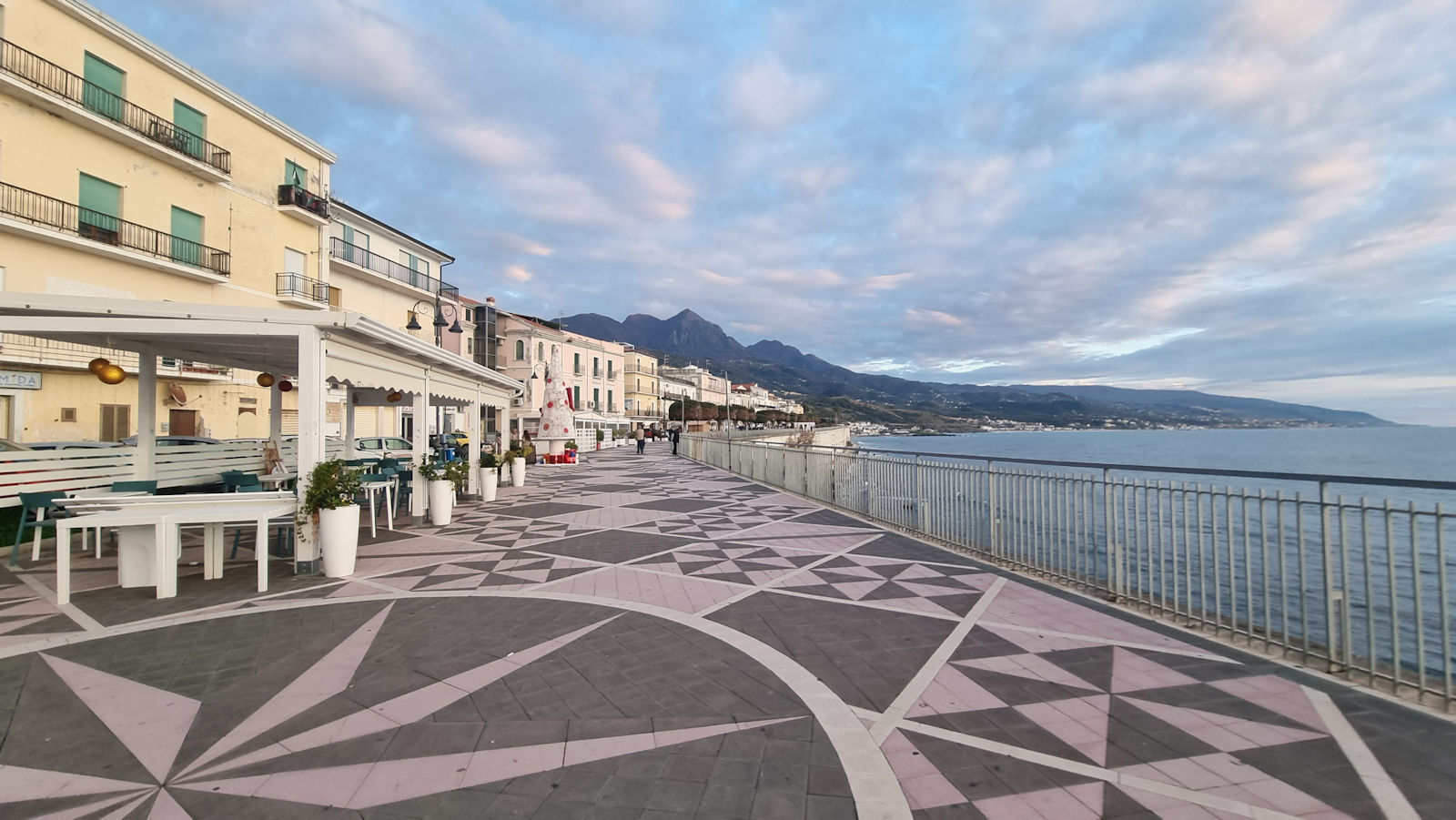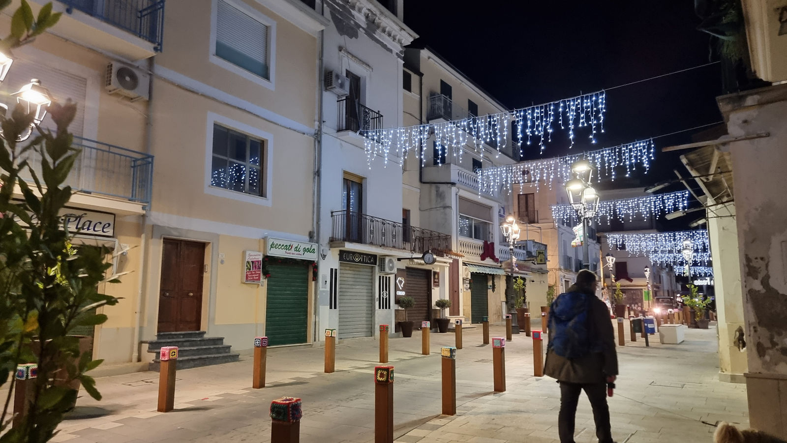 Erst gegen 4 Uhr verlassen wir den Platz, nachdem wir den Besitzer Michele kennengelernt und ein wenig mit den anderen Campern gesprochen haben. Nach nur 15 Minuten erreichen wir den kleinen Ort Dianante. Am Lungomare herrscht weihnachtliches Flanieren und die erste offene Bar ist unsere. Die Bedienungen sind sehr nett und der erste angebotene Wein sehr lecker. Der zweite Weißwein, den uns der Inhaber vorschlägt ist phantastisch. Ein Zibibbo aus der Region Tropea. Schon der Duft, der einem aus dem Glas entgegenkommt ist herrlich und der Geschmack…wow…