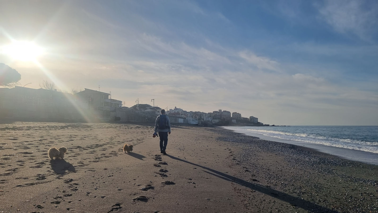 Schnell sind wir fertig für den Frühstücksbesuch in der nahegelegenen Ketty-Bar. Wir sitzen zwar im Schatten, aber es ist trotzdem angenehm und die Cornetti und der Caffè lecker. Nach etwa einer halben Stunde geht es wieder zurück zum Womo. Und hier heißt es dann: Sonne tanken. Es ist so wunderbar warm wie bei uns zuhause Ende Mai Anfang Juni.