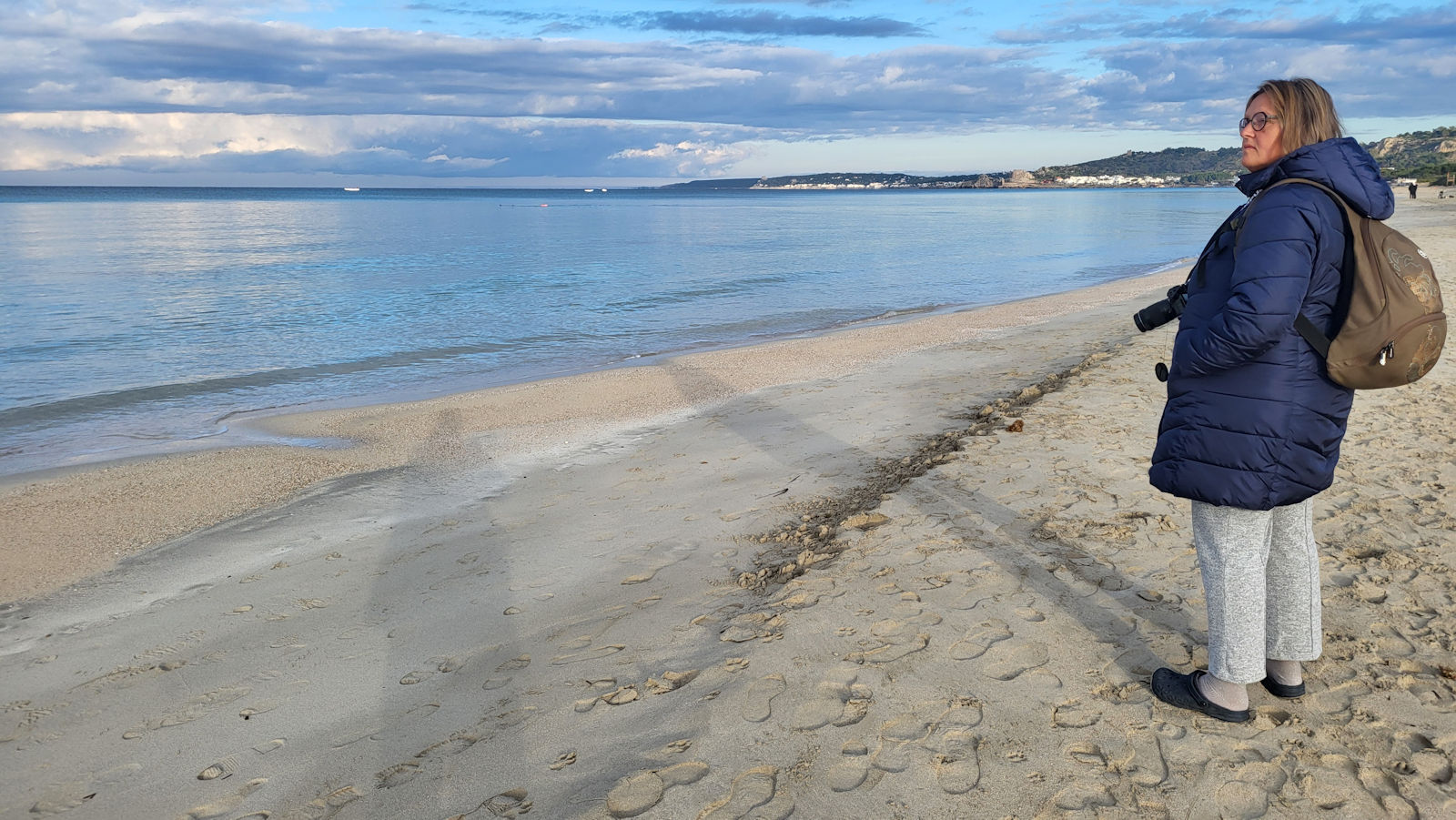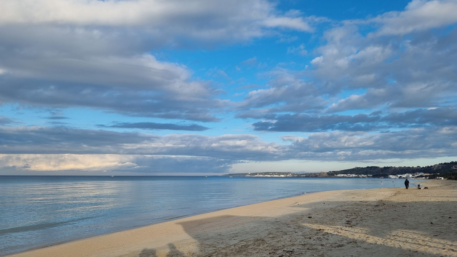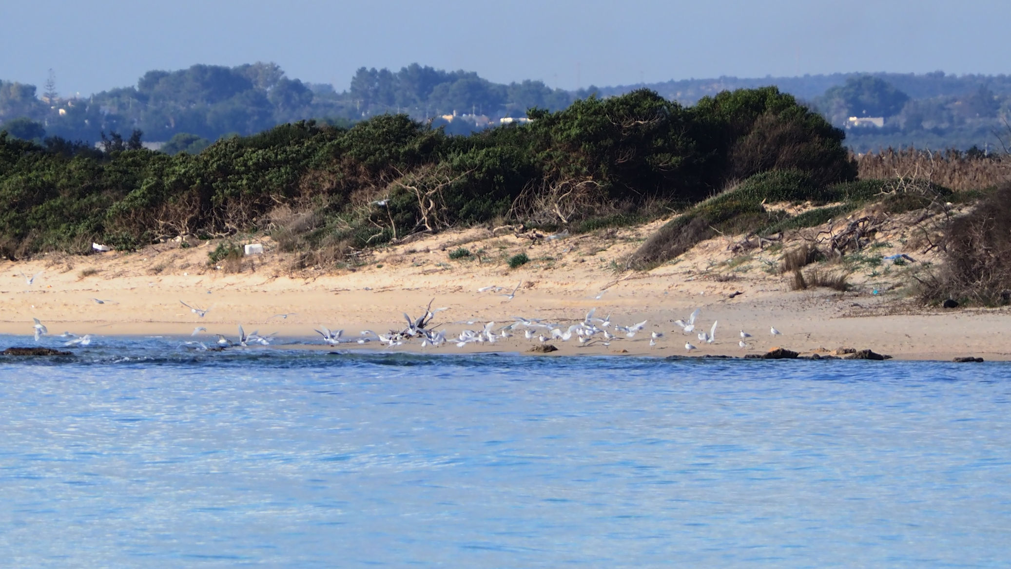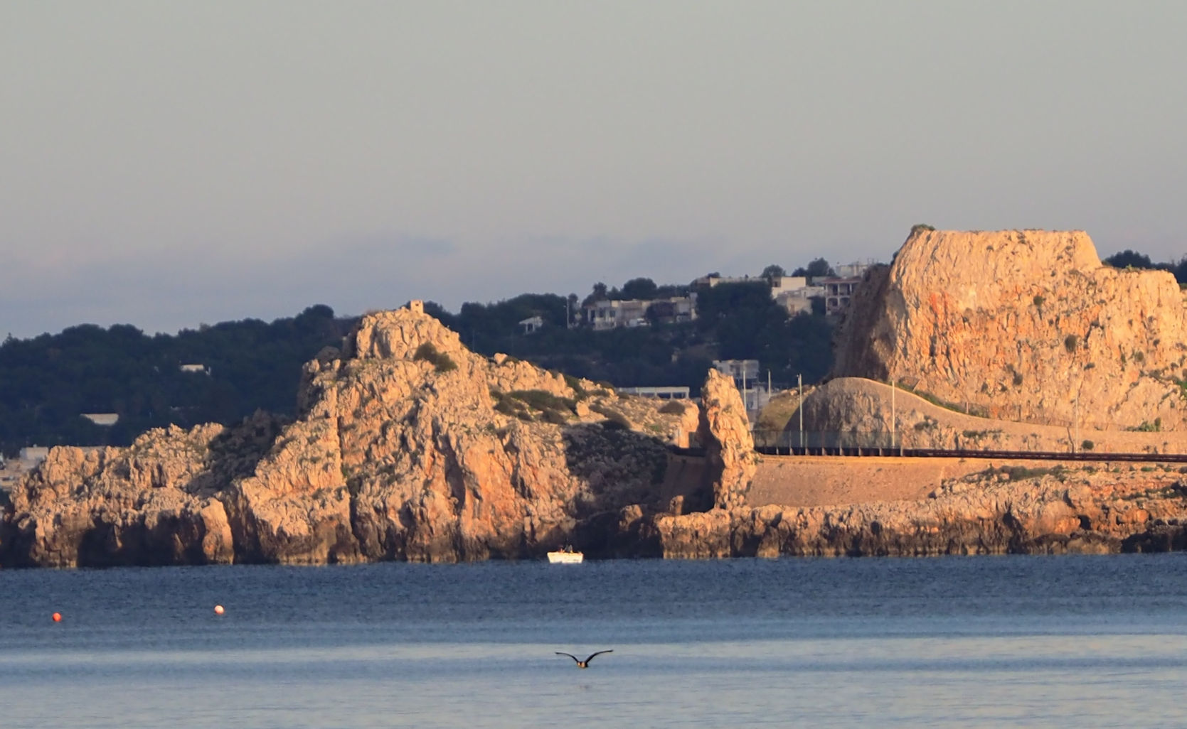 Unser Frühstück genießen wir in Sant Isodoro in einer netten Bar mit großem Parkplatz und landen kurze Zeit später wieder am gleichen Strand wie bereits gestern. Heute ist hier viel mehr los als gestern, so ist auch an eine Eisvogelbegegnung nicht zu denken. Es ist schon recht warm in der Sonne und eigentlich wollten wir ja bleiben. Aber auf der anderen Seite der Bucht scheint tatsächlich ein Restaurant geöffnet zu haben und wir haben auf dieser Reise gelernt, dass man das ausnutzen muss.
