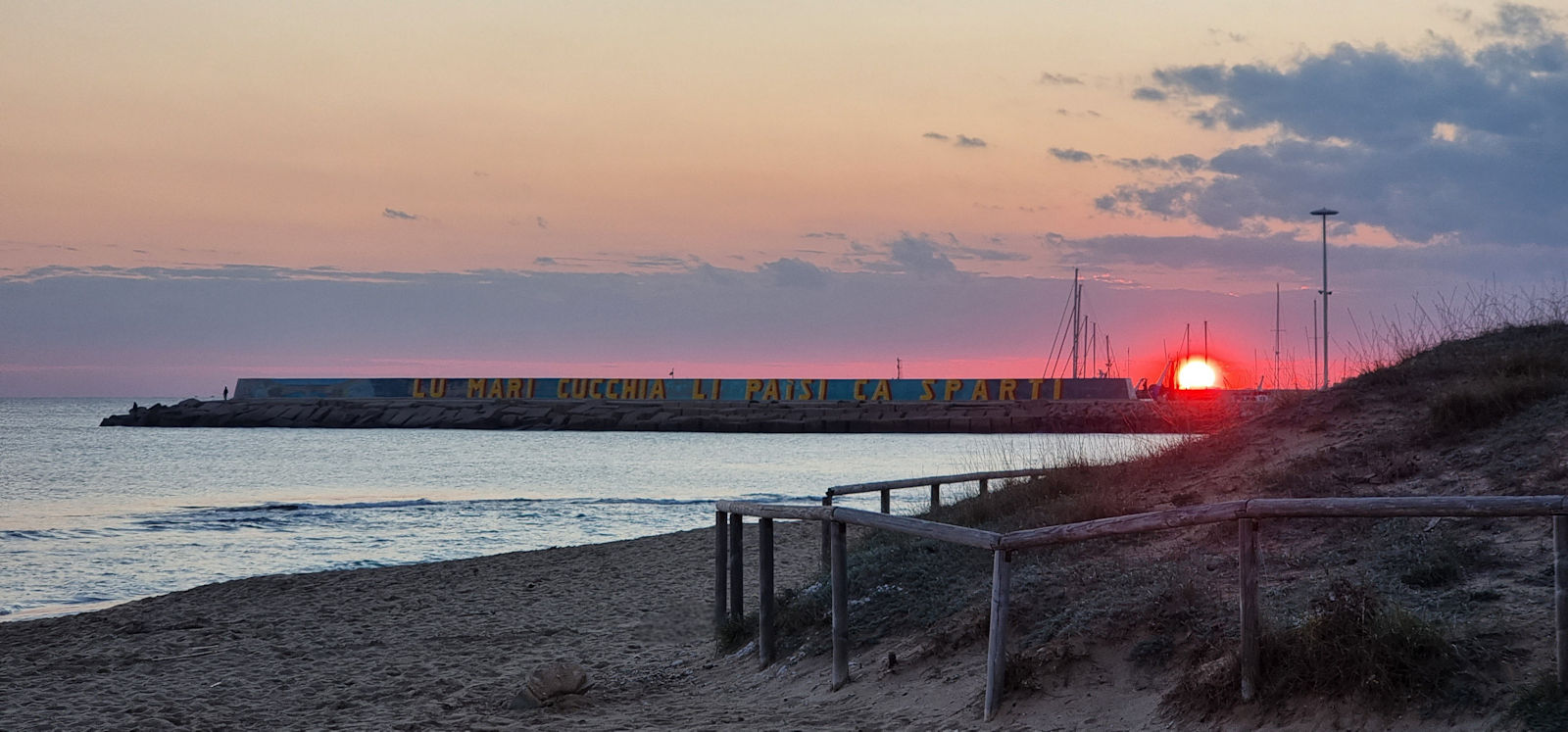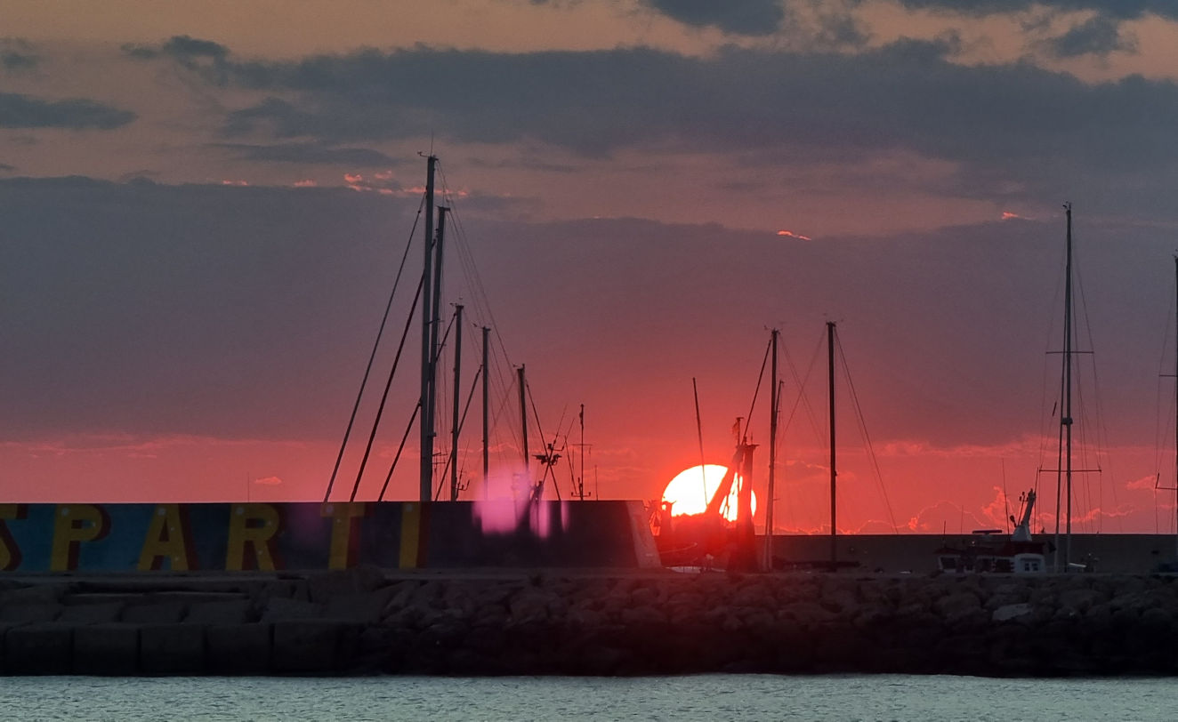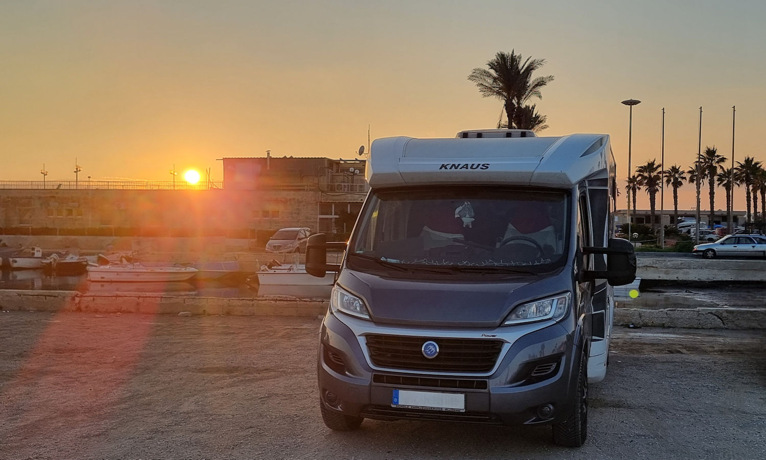 Etwa 25 Minuten später und einem Tankstop an einer tatsächlich geöffneten Tankstelle – ihr kennt das ja schon; das muss man ausnutzen – parken wir auf dem Hafenparkplatz von Campomarino. Bei unserer Sonnenuntergangsgassirunde finden wir ein ruhiges Plätzchen in Strandnähe neben einem für die Saison eingemotteten Restaurant, in der Hoffnung daß es sich hier mit den Silvestersprengsätzen in Grenzen hält. Die Sonne geht tiefrot unter und kurze Zeit später geht ein sehr heftiger Schauer nieder. Dieser dauert bis etwa 9 Uhr…Zeit sich in die Waagerechte zu begeben…bereits heute Nacht soll es einen kleinen Temperatursturz geben und die Temperaturen in den Bereich um Null Grad zurückgehen….mal sehen ob der Wetterbericht Recht hat…und so geht ein ganz normaler Urlaubstag zu Ende…
