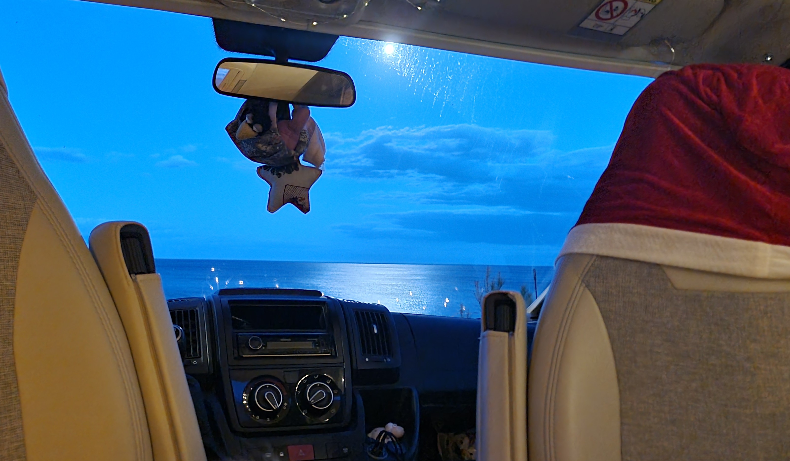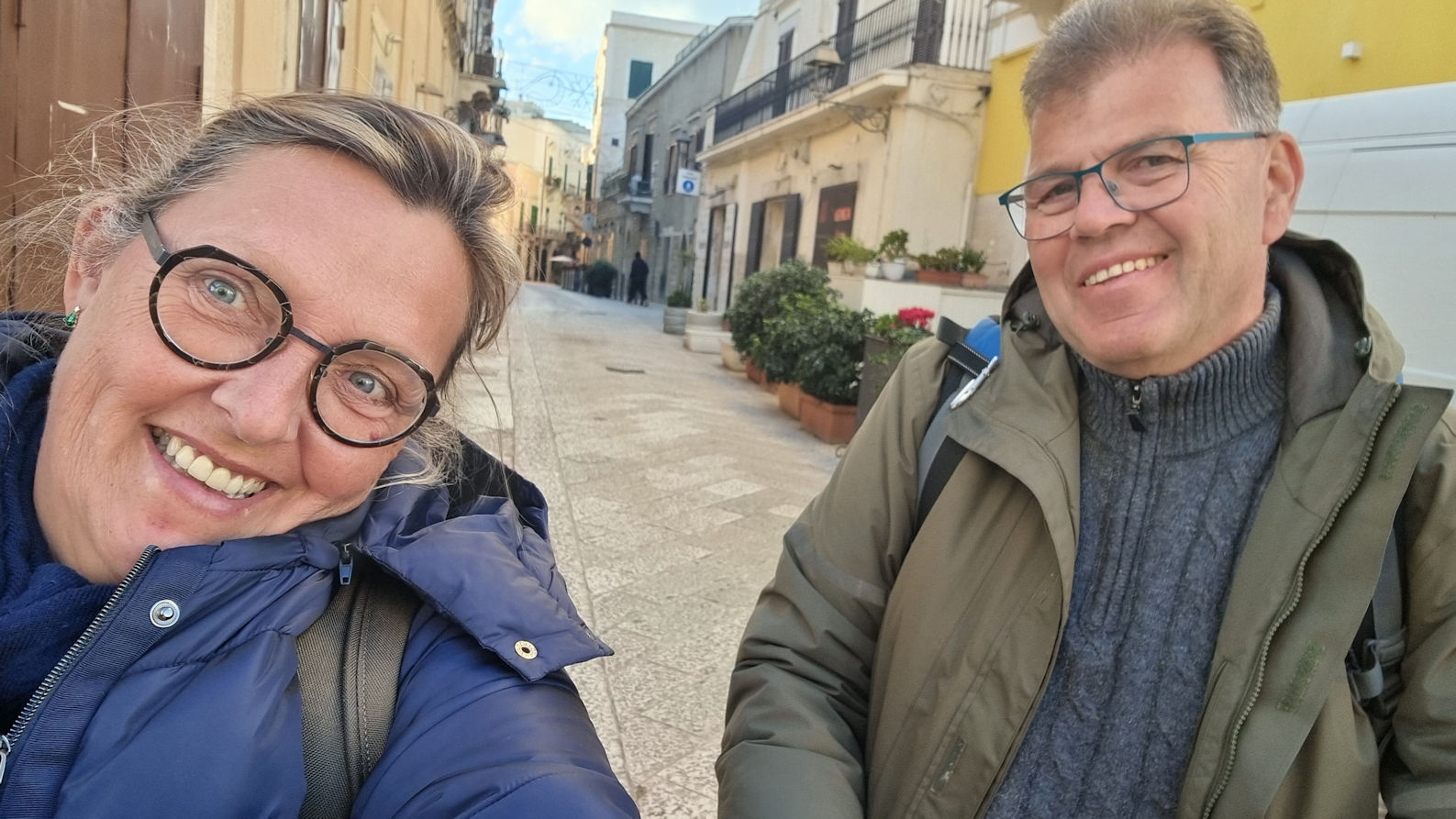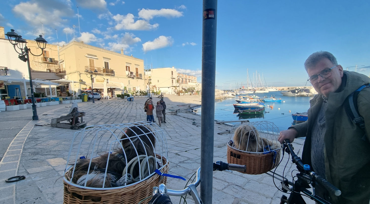 Wir passieren einige Trulli, die Stadt Ostuni und magische, alte Olivenbäume, von denen in den vergangenen 12 Jahren leider unzählig viele an einem über eine Zikade aus Südamerika eingeschleppten Virus, dass die Wasserzufuhr des Baumes verstopft, gestorben sind. Schließlich entscheiden wir uns kurzfristig für Plan B und es geht ohne touristischen Pflichtstop auf einen relativ neuen Camping am Meer in Bisceglie. Hier parken nur 4 weitere Camper. Der nette Herr an der Rezeption, der aus Kuba kommt und bei den heutigen immerhin herrschenden 15 Grad dick in Mütze und Schal eingemummelt ist, zeigt uns unseren Platz direkt am Meer. Auf dem Campingplatz wohnt ein riesiger Schwarm grüner Papageien, aber leider verstecken sich die kleinen Kerls heute geschickt vor unserer Kamera.