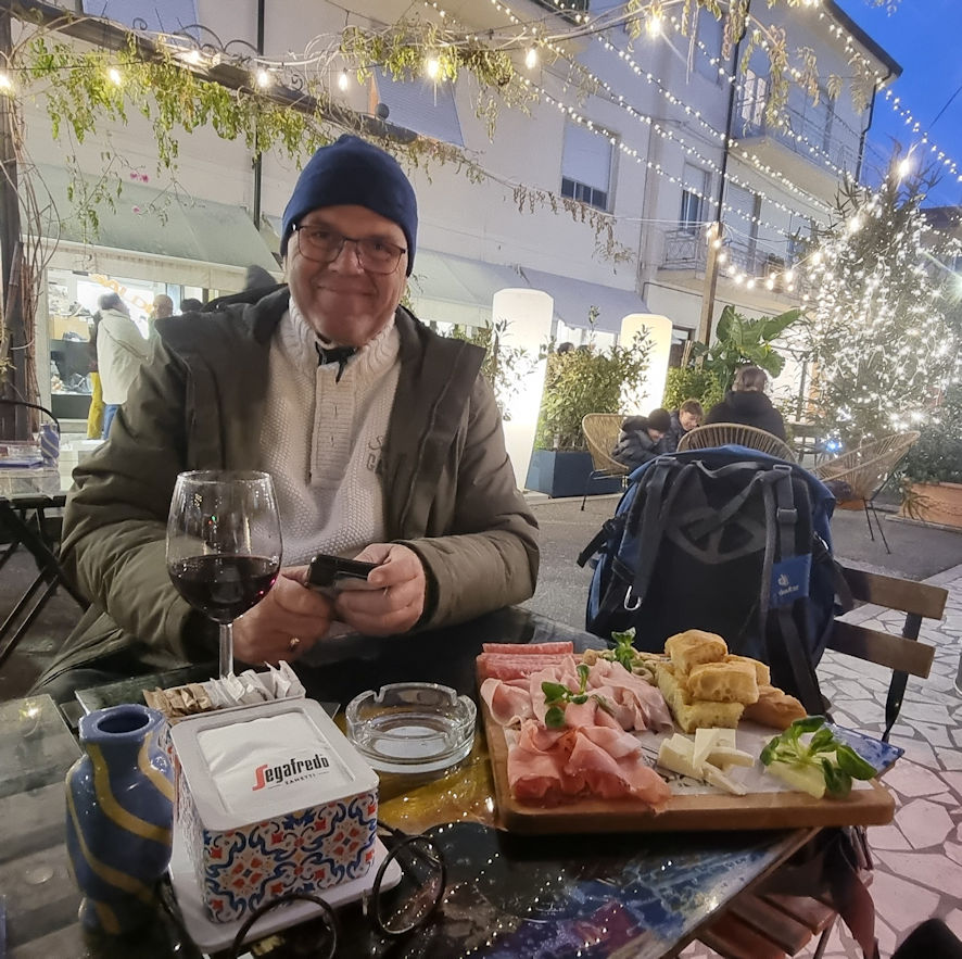 Dass wir richtig gut geschlafen haben, könnt Ihr Euch bestimmt denken. Es war bis auf ein ausuferndes Geböllere so gegen halb 3 , was eine wache und aufgeregte Fellnase zur Folge hatte, sehr ruhig. Und so kommt es wahrscheinlich auch, dass wir erst nach 9 Uhr aufstehen. Um 10 Uhr wollen wir uns wieder mit Defi und Roberto treffen, denn wir haben noch eine kleine Überraschung für die beiden. Sie hatten an Weihnachten ihre Silberhochzeit. Und als Dankeschön für die wundervolle Zeit, die wir beide an unserer eigenen Silberhochzeit auf Le Rondini haben durften, wollten wir uns mit einer netten Geste revanchieren.