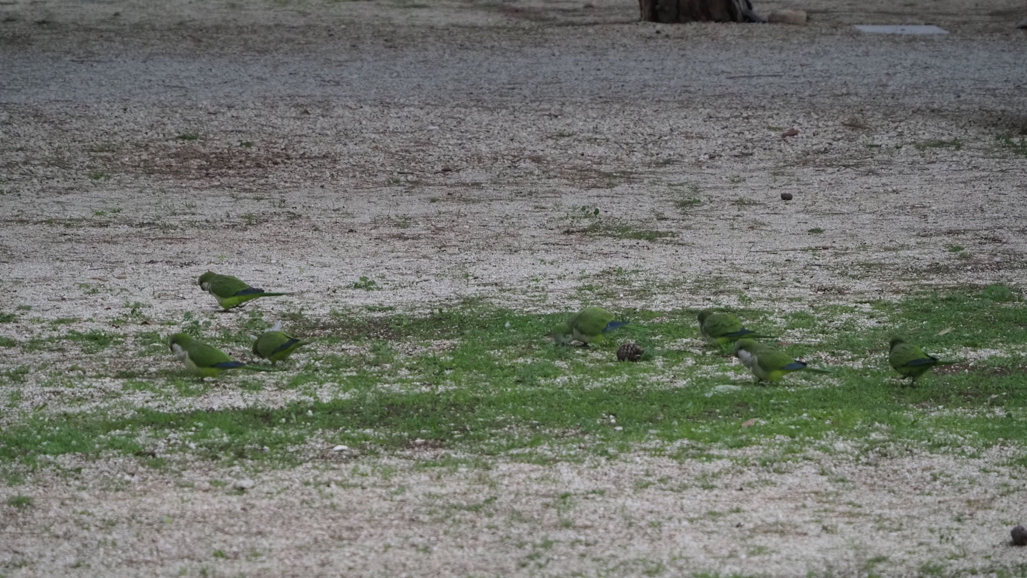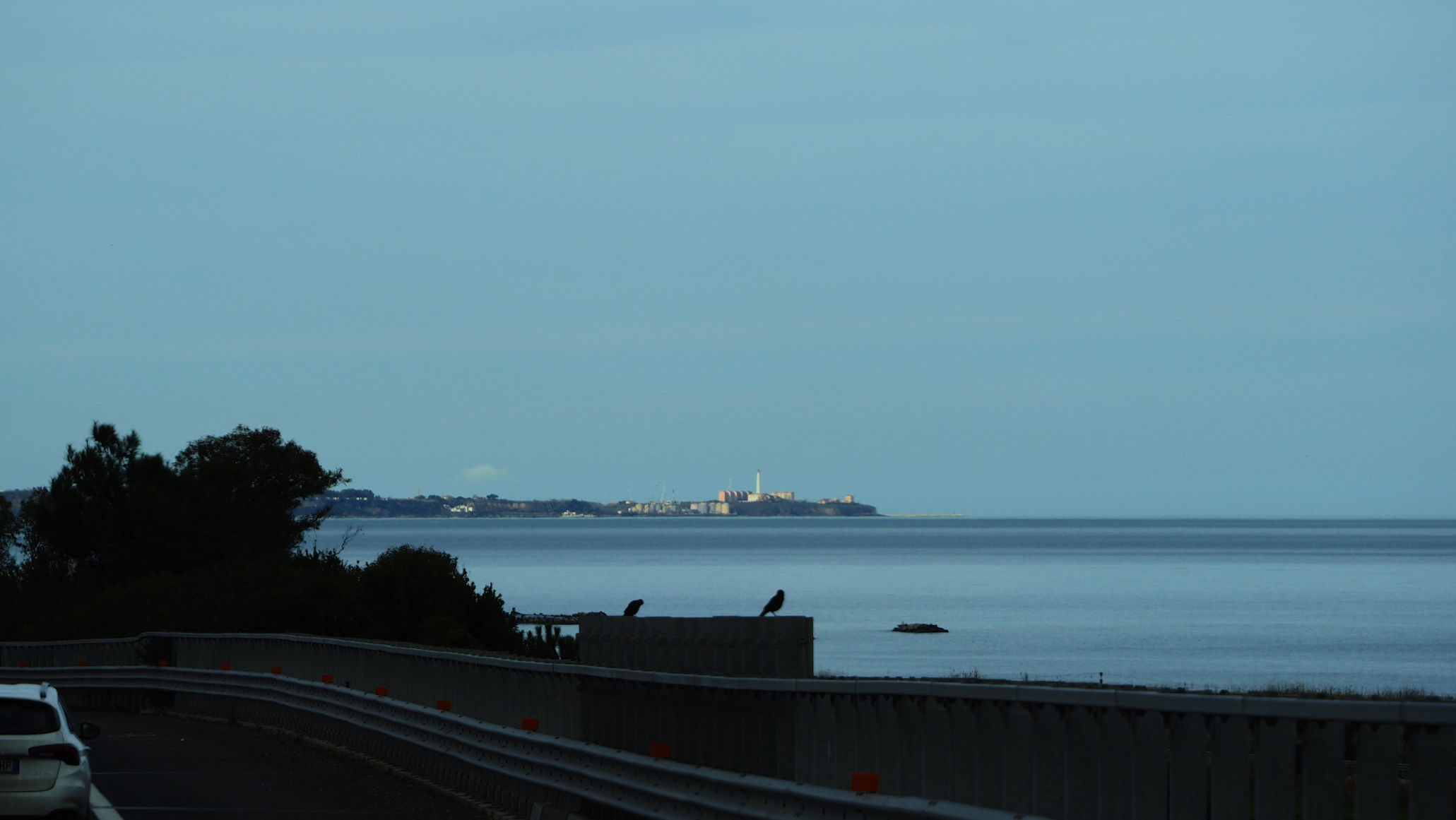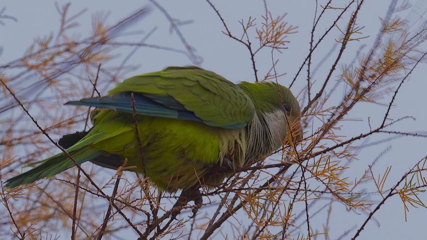 Schon als wir erwachen regnet es leicht. Die Papageien kreischen und fliegen wild in der Nähe unseres Platzes herum. Schließlich setzen sie sich immer wieder auf den Boden, wo sie zu fressen scheinen. Ein Regenpause nutzen wir aus, um ein paar Fotos zu machen und dann geht es schon weiter. Wir fahren gerade mal 20 km bis zur Saline die Margherita di Savoia, der größten Saline Europas, natürlich nicht, ohne vorher an einer Bar gefrühstückt zu haben. Wie immer mit Caffè und Cornetto.
