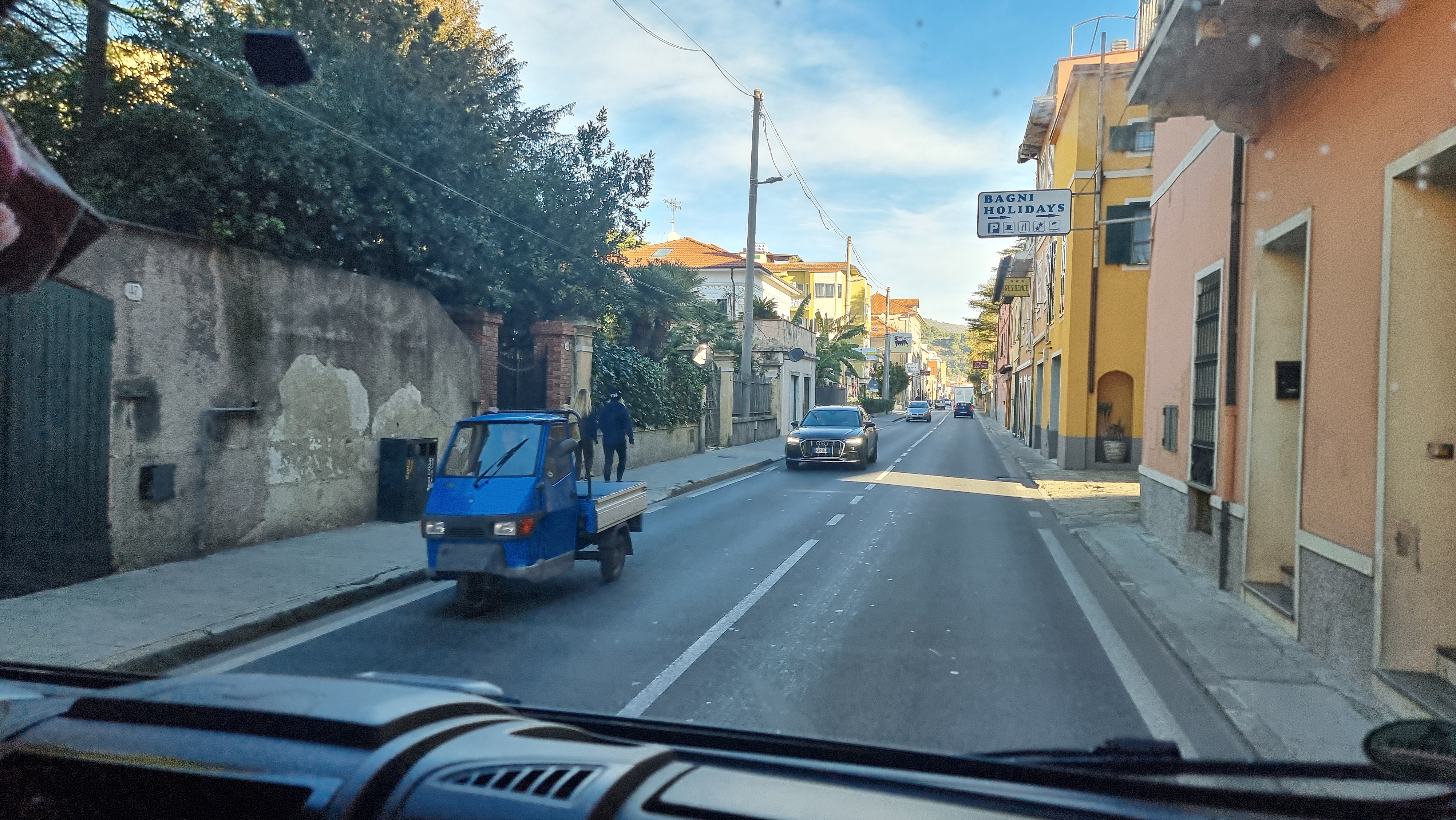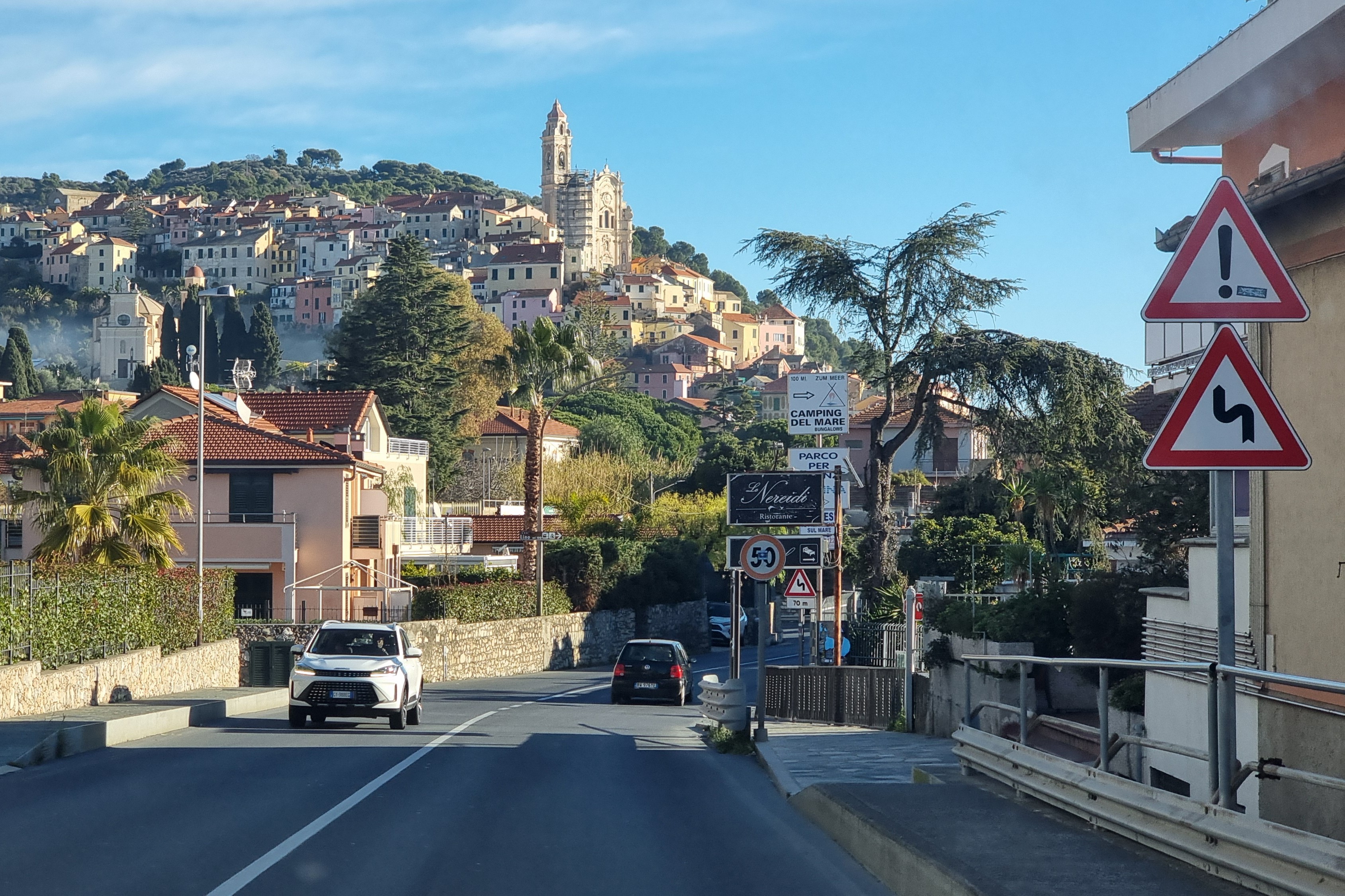Die Umarmungen sind herzlich und kurze Zeit später biegt unser Womo auf die SS1 – die Aurelia- ein. Entlang der Küstenstraße bummeln wir uns, immer mit neuen Ausblicken auf das Meer, nach Albenga zum Stellplatz Ca de Miche. Im Jahr 2014 waren wir hier zum letzten Mal und irgendwie ist alles so, wie es damals war. Nette Betreiber und ein sonniges Rasenplätzchen. Schnell haben wir geparkt und dann geht es in die Stadt, die einst auf Abwegen unterwegs war oder besser gesagt: das Bistum machte über sich reden….den Artikel aus dem Spiegel findet ihr hierhttps://www.spiegel.de/panorama/bistum-albenga-imperia-in-italien-pfarrer-auf-abwegen-a-999027.html